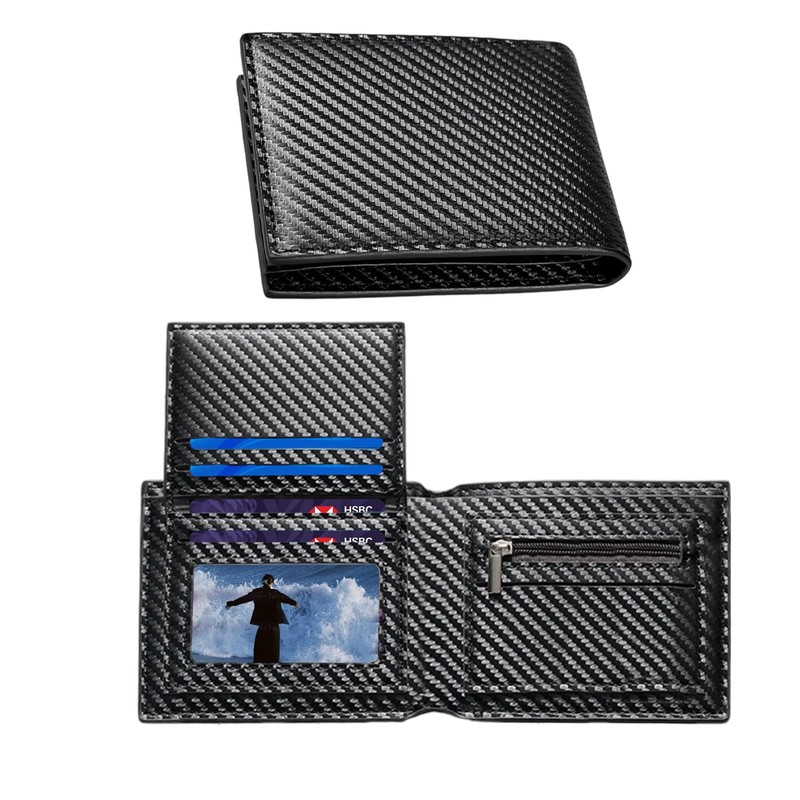 - 【Secure RFID Blocking Mens Wallet】Protect your cards from digital theft with integrated RFID blocking in this sleek tri-fold wallet. Featuring a durable carbon fibre textured PU exterior, it offers essential security for everyday wallets for men uk use, keeping your information safe