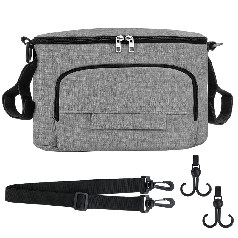 Vylyciy Pram Organiser, Universal Pram Bag, Pram Bag with Closure, Adjustable Shoulder Straps, Cup Holder, Baby Changing Bags, Buggy Organiser (Grey)