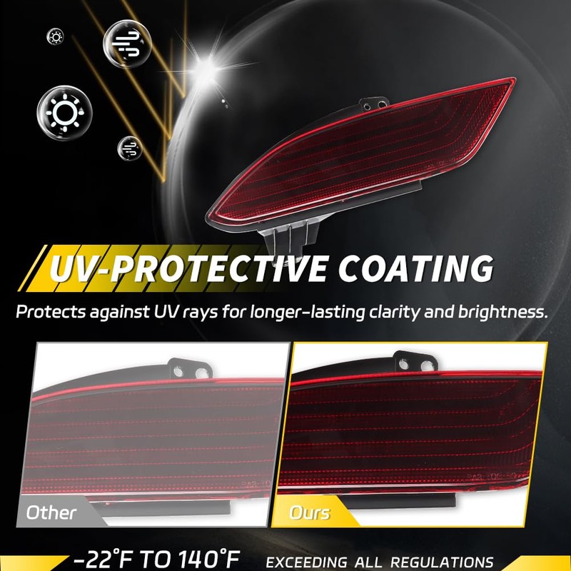 - [Effortless Installation] VYNTRAL Rear Bumper Reflector Cover 1:1 OEM replacement and high compatibility make it easy to install without any hassle. It replaces the old OEM halogen housing easily, giving you a recognizable appearance, improving your car's overall style.