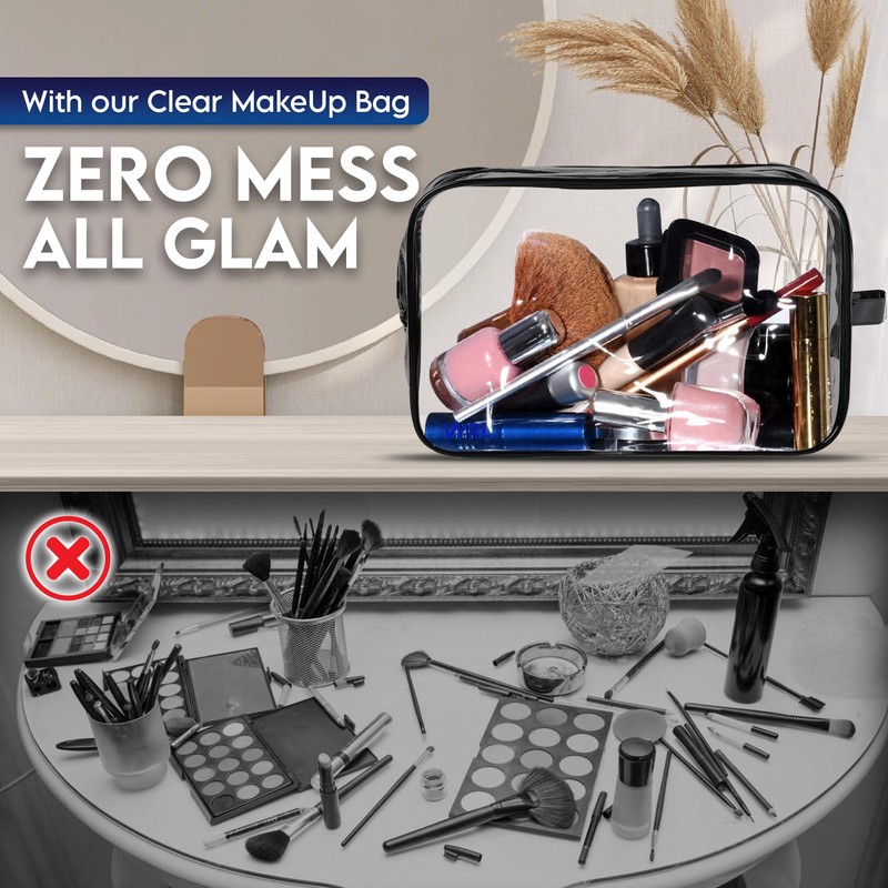 - 🔥𝗧𝗦𝗔-𝗔𝗽𝗽𝗿𝗼𝘃𝗲𝗱: VYRL 8.46 x 6.3 x 1.18 inches clear travel bags for toiletries strictly adhere to the TSA 3-1-1 liquids rule. The quart-size transparent clear cosmetic bag design ensures a swift pass through airport security & easily spot your essentials in a breeze.