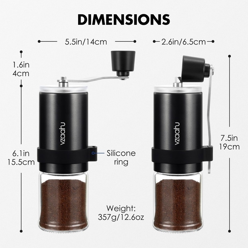 - Vzaahu portable coffee grinder is a convenient device for brewing fresh coffee on the go. It is lightweight and easy to carry, with a compact design that allows for easy storage. The grinder uses high-quality ceramic blades to efficiently grind coffee beans into a fine powder, ensuring a rich and flavorful cup of coffee.