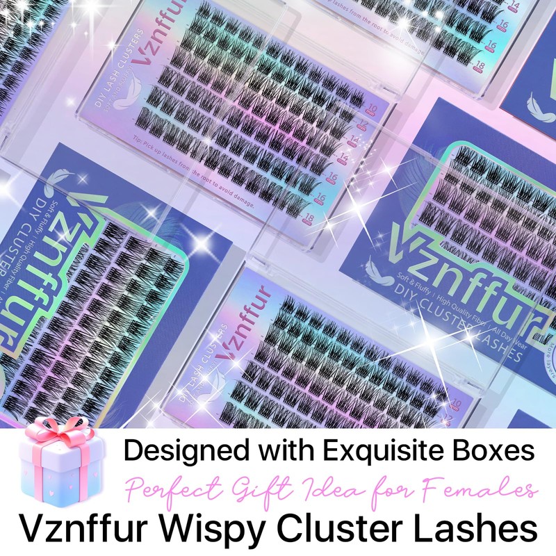 Vznffur Wispy Lash Clusters Natural Eyelash Clusters C Curl Cluster Eyelash Extensions 10-18 mm Mix Length Individual Lashes with Thin Lash Band