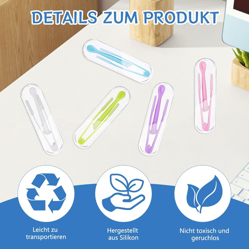 2. The set includes tweezers and suction cups in five different colours - pink, green, blue, purple and white.