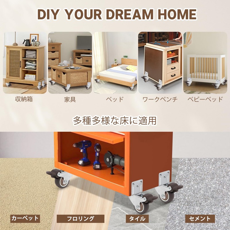 • W B D WEIBIDA L-Shaped Caster Wheel with Brake, 1.25 Inch, 360 Degree Rotation, Silent, TPE Rubber Wheel, Free Caster with Screws, Stopper, Replaceable DIY Casters Convenient Goods, Set of 4 Wheels Diameter 2.0 inches (50 mm)