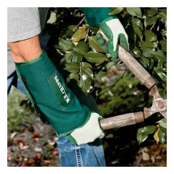 These Arm Guard Chapps provide full forearm protection from wrist to elbow, ideal for arborist work, landscaping, and general cleanup. Made from heavyweight cotton, they offer durable coverage with a comfortable fit. Hook-and-loop fasteners ensure easy adjustment and a secure hold. To determine size, measure from wrist to elbow for length and around the forearm for width. Color: Green.
