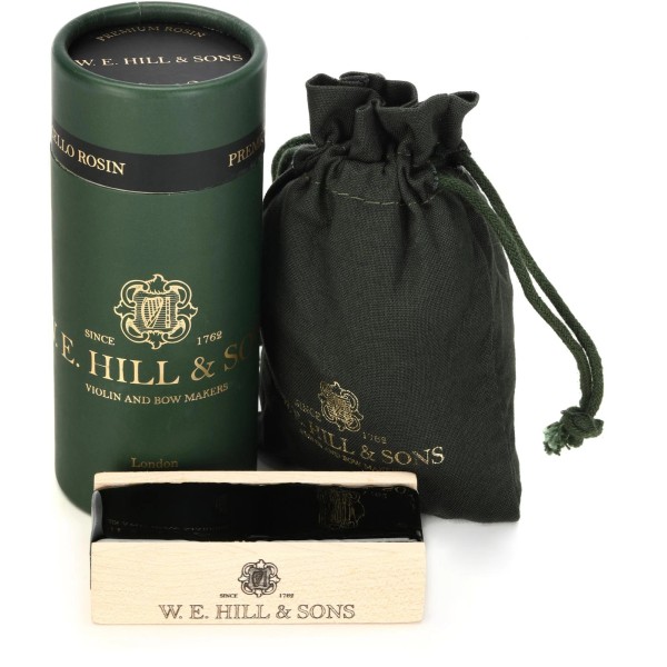 A great choice for advanced and professional players, W.E. Hill & Sons Premium Cello Rosin is crafted from a colophony of natural oils using an artisanal hand-mixing, hand-pouring process, providing you with lock-tight bow-hand control. This dark, medium-soft rosin boasts a #7 Grip Profile Rating, it's appropriate for all weather and climates, and it delivers warm, controlled sonic characteristics with unprecedented dynamic range. Here at Sweetwater, we're impressed by this rosin's consistent quality, as well as by its excellent bowing properties. W.E. Hill & Sons Premium Cello Rosin comes encased in a solid Maplewood holder with a color-matched drawstring bag and a display tube.W.E. Hill & Sons Premium Cello Rosin Features: