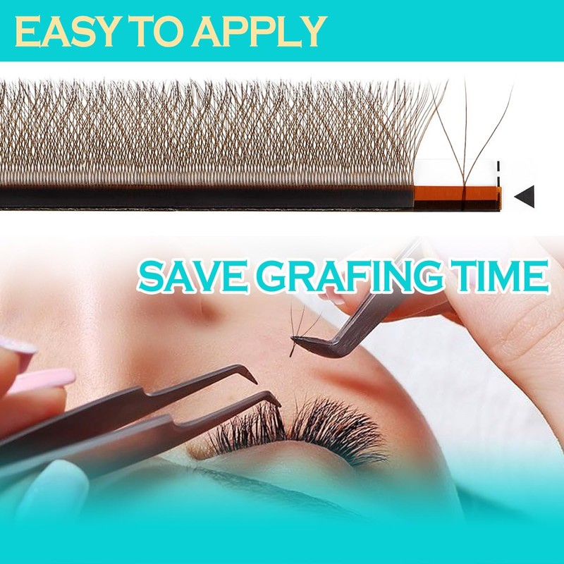 - Better retention: Compared to individual lashes, these W shape premade fans have a long stem which can increase the contact area with natural lashes. Therefore they provide a stronger bond and retention to lashes.
