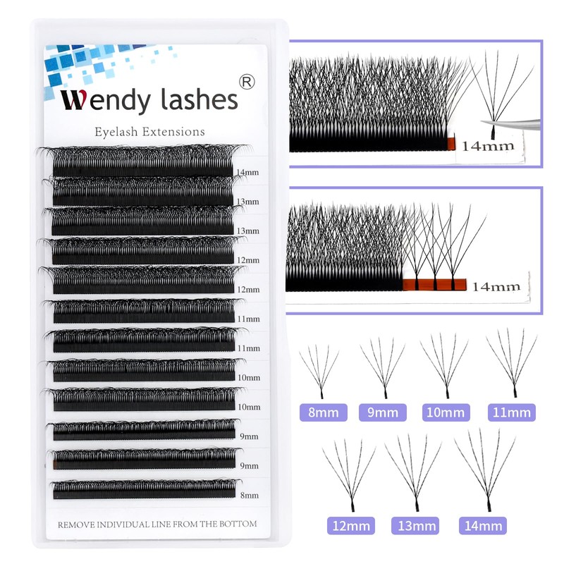 • 1. Product Description:Wendy Lashes 5D W Lash Extensions: 0.07mm D Curl mixed 8-14mm W-Shaped 3D Premade Fans, you can mix and match as you like for different occasions.