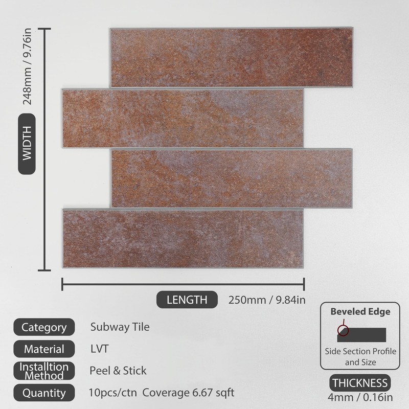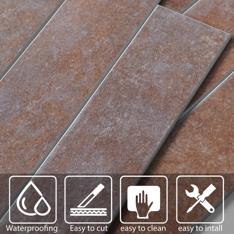 W&S 10-Sheet Red Brown Peel and Stick Backsplash Subway Tiles for Wall, Thicker Sturdy Adhesive Faux Stone Tile for Kitchen Backsplash, Self Stick on Living Room, Bathroom, Fireplace, RV Accent Wall