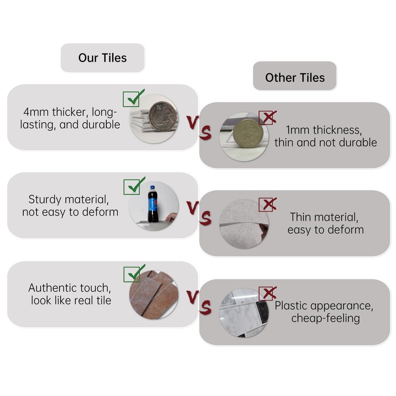 • [Size & Package ] - Each tile measures 9.76"x9.84"x0.16" and each box contains 10 tiles with a total area of 6.67 square feet.We recommend taking 5~10% more material incase of cutting wastage