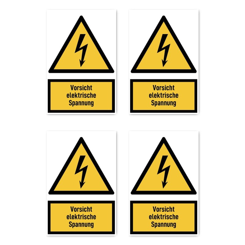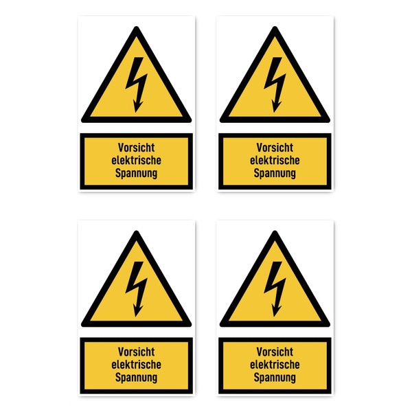 W012 W012 DIN EN ISO 7010 / ASR A1.3 Sticker 112.5 x 75 mm, Pack of 4 – Caution Electrical Voltage – Warning Sign with Text (German) (Yellow/Black)