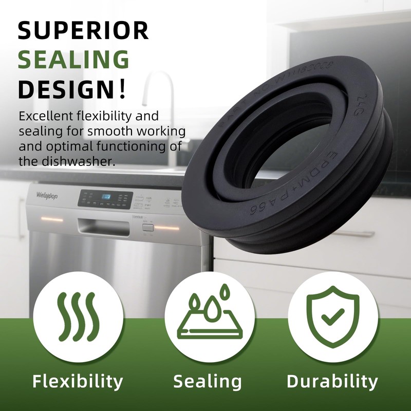 • Superior Sealing: WPW10538166 dishwasher pump grommet has excellent flexibility and sealing ensuring a tight connection between the sump assembly and the circulation pump, without leaks, achieving smooth working and optimal functioning of the dishwasher.