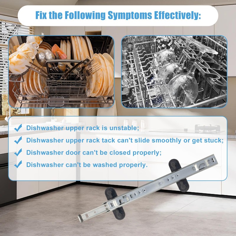 - High quality: W11259785 Dishwasher Upper Rack Track is are made of high quality materials, making it more durable and corrosion resistant, so that your dishwasher can be used for a longer time. Meanwhile, kitchenaid's W11259785 dishwasher replacement parts use a rail system that allows you to easily adjust the rack height, which is more robust, durable, and rust-resistant than the original design, especially improved metal ball bearings that slide easily and smoothly. The rack also has a handle for easy disassembly and can be used with any Vortex /kitchenaid dishwasher model.