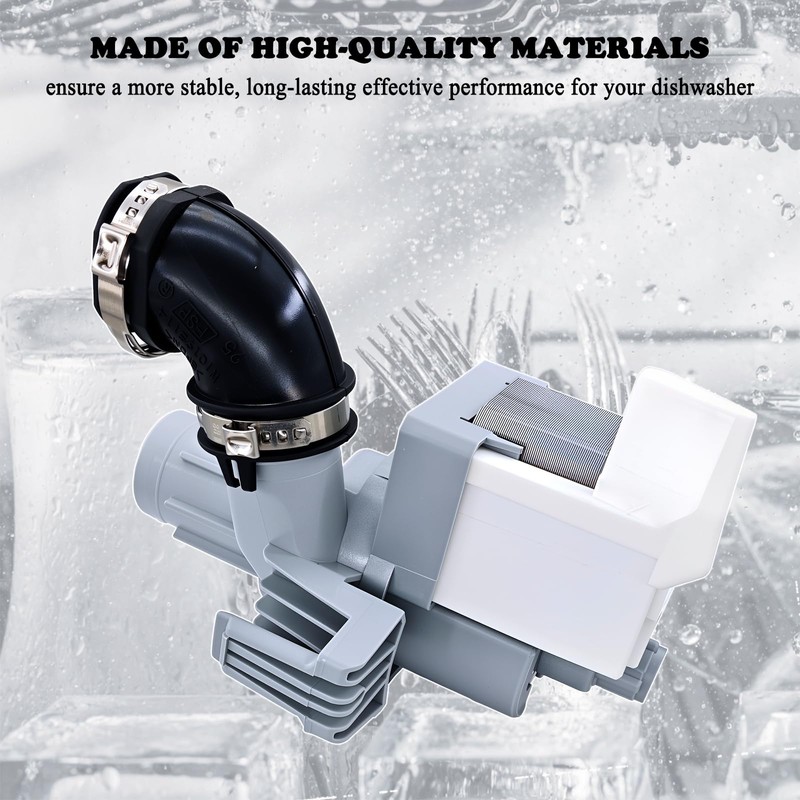 • Premium Quality: This dishwasher circulation pump is Made of high-quality materials, features durability and reliability, ensuring a quieter, more stable, long-lasting effective performance for your dishwasher. After installing, you will need a special clamp to tighten the hose clamp of the black hose part.