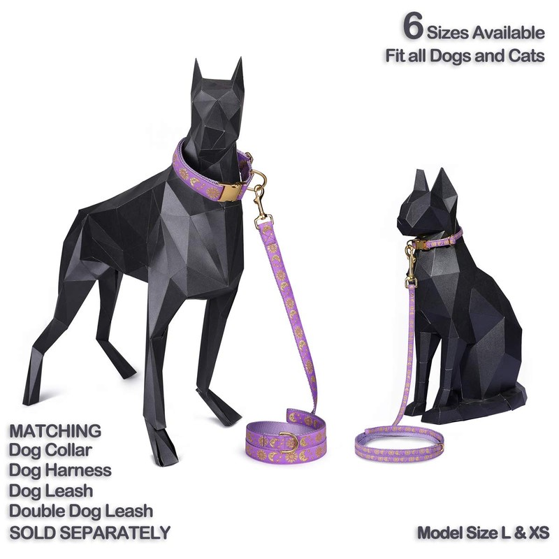 - All pictures are taken with our production samples from a size of Large (Width 1”). This collar is a single product. Its matching leash/lead /harness /double dog leash/lead sold separately.