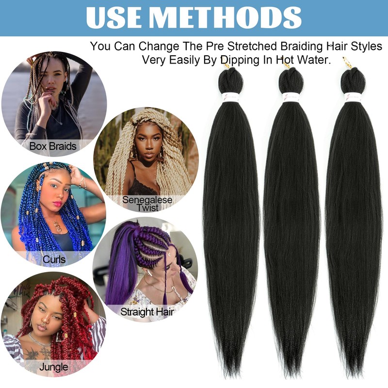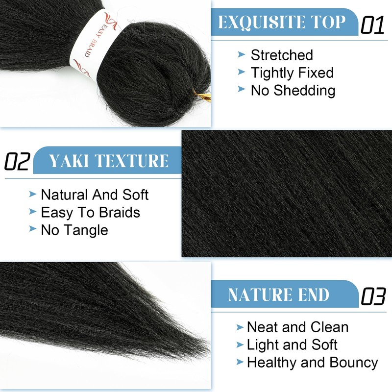 - 【Premium Material】Pre-stretched braiding hair made of high-quality low-temperature flame-retardant synthetic fiber, Soft, featuring yaki texture and natural look as human hair.