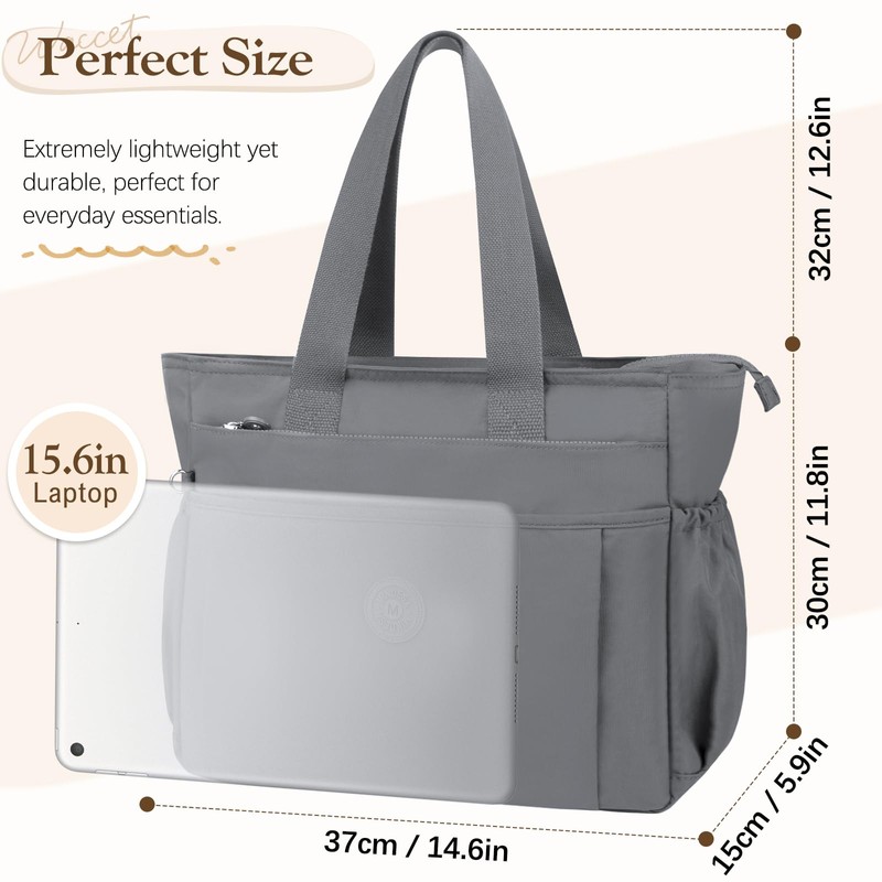 - Large capacity and multiple compartments: this women's shoulder bag offers 10 compartments: 1 main compartment, 2 inner pockets, 1 zip inner pocket, 2 front zip pockets, 2 anti-theft zip pockets on the back and 2 side pockets. The two elastic side pockets provide space for a water bottle or umbrella. The spacious main compartment offers space for clothes, cosmetics, A4 folders, a 15.6 inch laptop, books and other daily essentials.