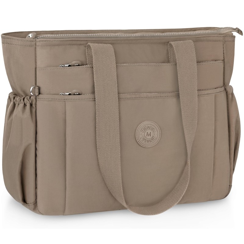 WACCET Women's Large Handbag, Waterproof Nylon Shoulder Bag with Many Compartments, Lightweight Tote Bag, Shopper Bag, Women's Casual Weekender Bag, Shoulder Bag for Travel, Work, School, khaki