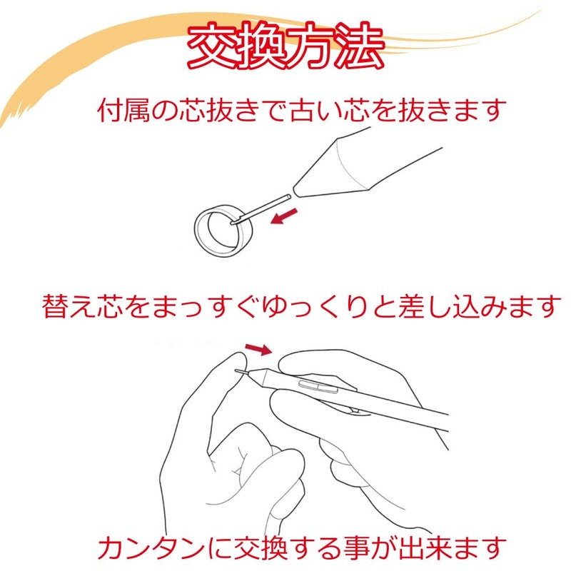 • [Replacement Method] The included ring type corer will hold the old core and pull it out. Insert the lead straight and slowly. Easy to replace