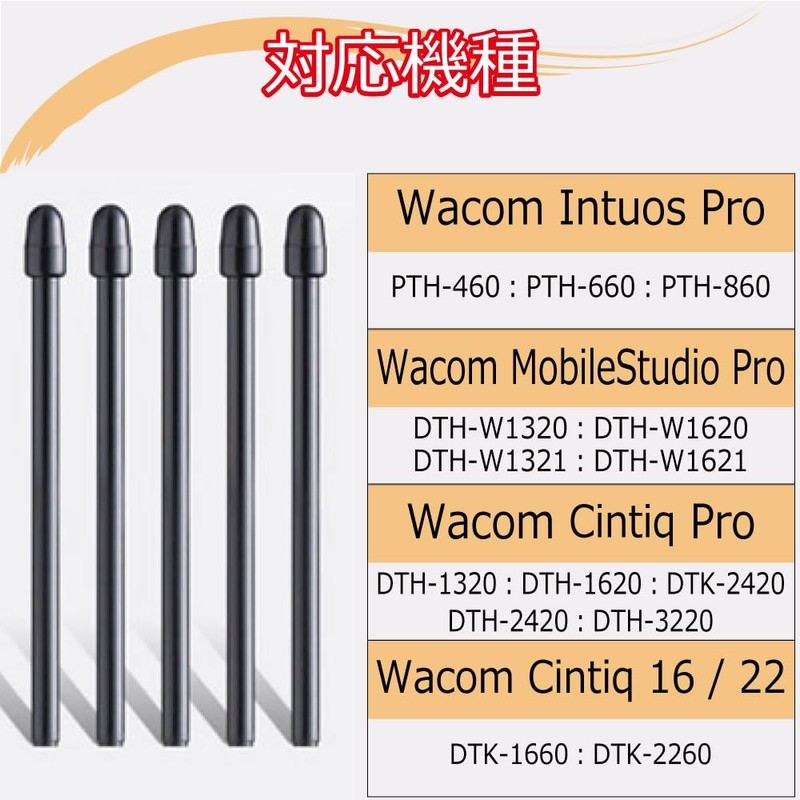 • Compatible models: Wacom Intuos Pro PTH-460 / PTH-660 / PTH-860 / Wacom MobileStudio Pro 1st DTH-W1320 / DTH-W1620 / Wacom MobileStudio Pro 2nd DTH-W1321 / DTH-W1621 ◆ Wacom Citniq Pro DTH-1320 / DTH-1620 / DTK-2420 / DTH-2420 / DTH-3220 ◆ Wacom Cintiq DTK-1660K0D / DTK-2260K0D ◆ Compatible Pen: Wacom Pro Pen 2 KP504E