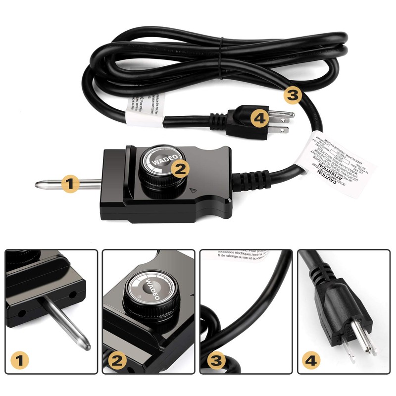 WADEO Adjustable Thermostat Probe Control Cord for Masterbuilt Smokers Cord Replacement.(15A Max, 110V)