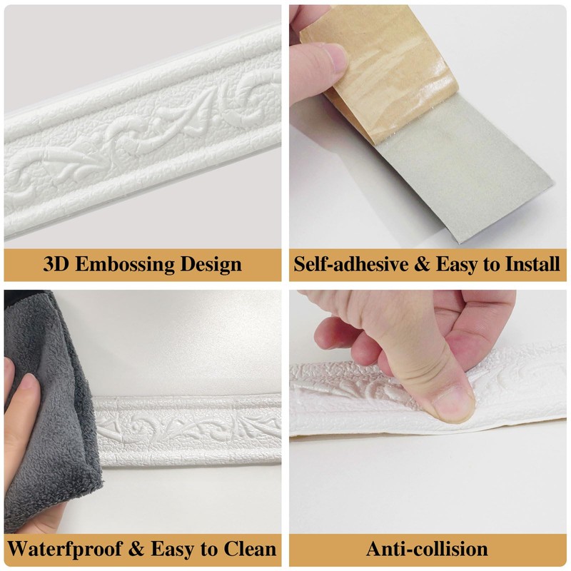 - Self-Adhesive 3D Wall Border: Easy to install, can be cut at will, strong adhesion, not easy to fall off. When using, simply peel off the release paper from the back and stick it on a clean, smooth surface.