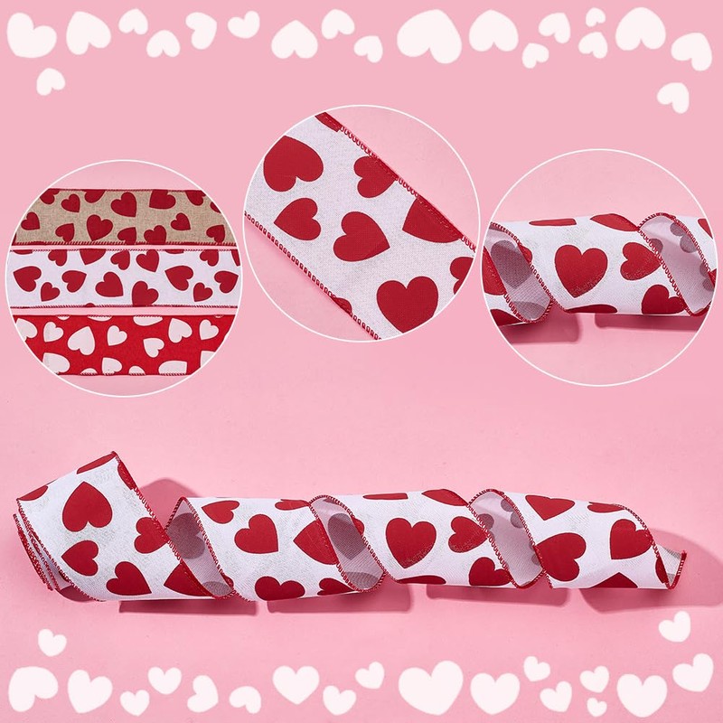 - Widely Applicable: This heart print ribbon is widely used for Valentine's Day, wedding and other holiday gift wrapping ribbons, wreaths, baskets, bouquets, bows, dresses, belts, dresses and decorative ribbons, or used for home door frames, corridors, staircases, bringing a unique artistic charm to the decorations