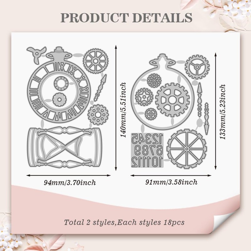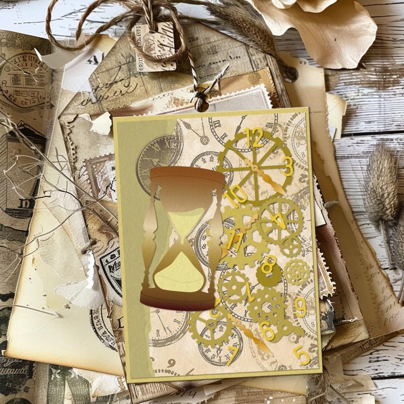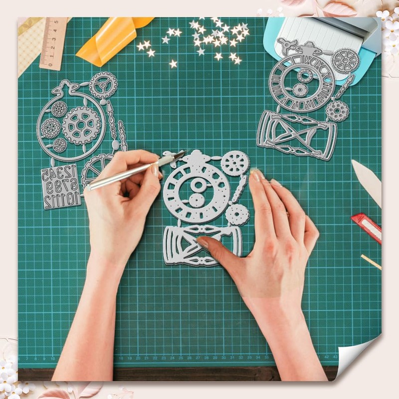 - Pocket Watch Design: This metal carbon steel cut die template is designed with a digital pocket watch theme and includes a pocket watch, hourglass, and gears motif with a vintage nostalgic atmosphere to inspire creativity in your scrapbooking work.