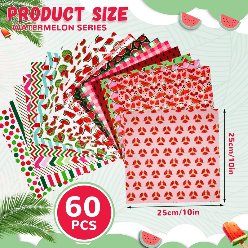 Vibrant and Diverse Quilting Fabrics: presented in a package of 60 pieces, these magnificent multicolor watermelon fabrics offer an array of patterns to choose from, such as watermelon, stripes, Polka Dot and check; Our quilting fabric measures around 10 x 10 inches/ 25 x 25cm, providing ample space for your most creative projects.