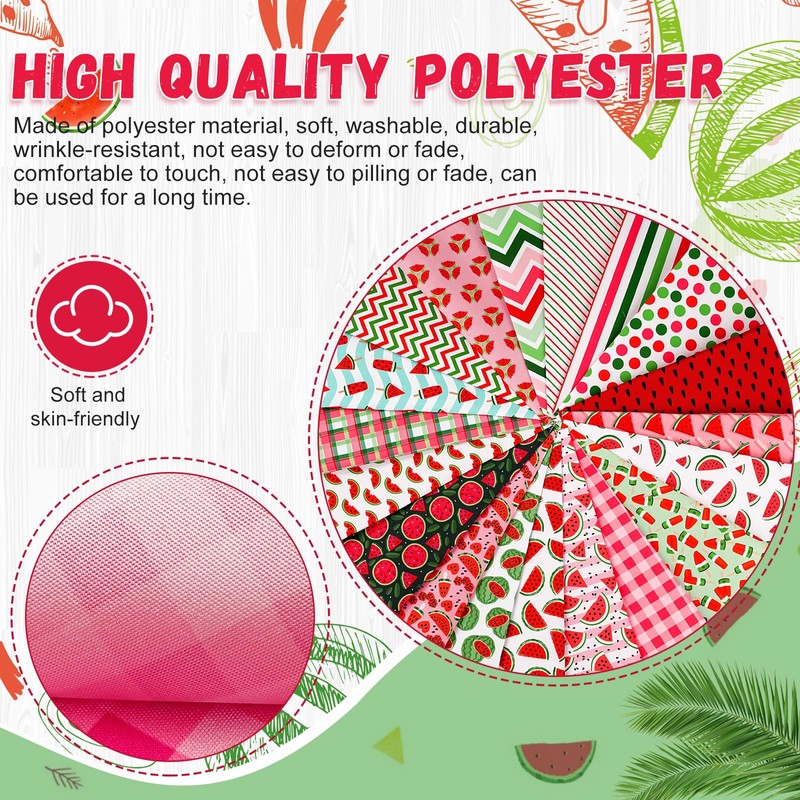 Reliable Polyester Material: our watermelon fabrics are made of polyester, a material renowned for its softness and durability; These fabrics enjoy a resistance to deformation, ensuring they remain in excellent condition throughout your crafting process; Every cut, stitch, and sew is supported by our reliable fabric quality.