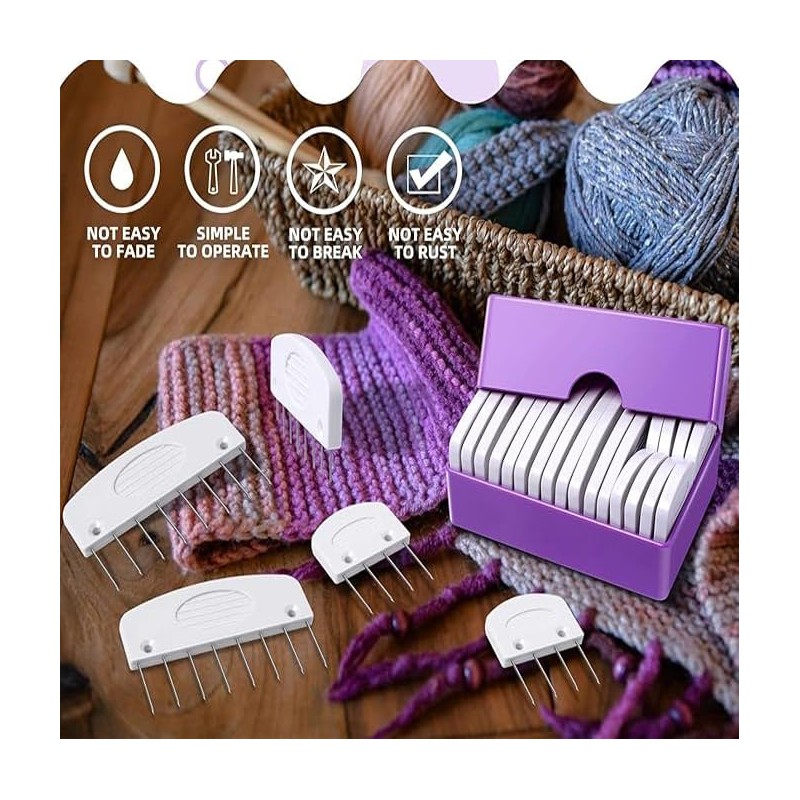 - [Two Size Options for Precise Blocking]Achieve professional results with our rustproof knitting accessories set containing 8pcs 4-stitch combs and 12pcs 8-stitch combs. These stainless steel blocking tools adapt to various project sizes, allowing crafters to securely fix wool sweaters, crochet works, and fiber art pieces on any weaving mat. The interlocking teeth ensure your handcraft yarn stabilizers maintain perfect tension throughout the drying process.