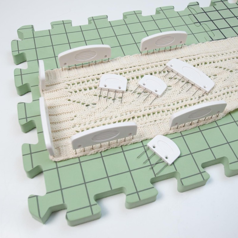 - [Time-Saving Innovation for Crafters]Replace traditional single-pin methods with our efficient knitting project fixation system. Each stainless steel blocking tool secures 4-8 stitches simultaneously, reducing blocking time by 60% compared to individual pins. Essential rustproof knitting accessories for quick sweater shaping and lace pattern alignment.