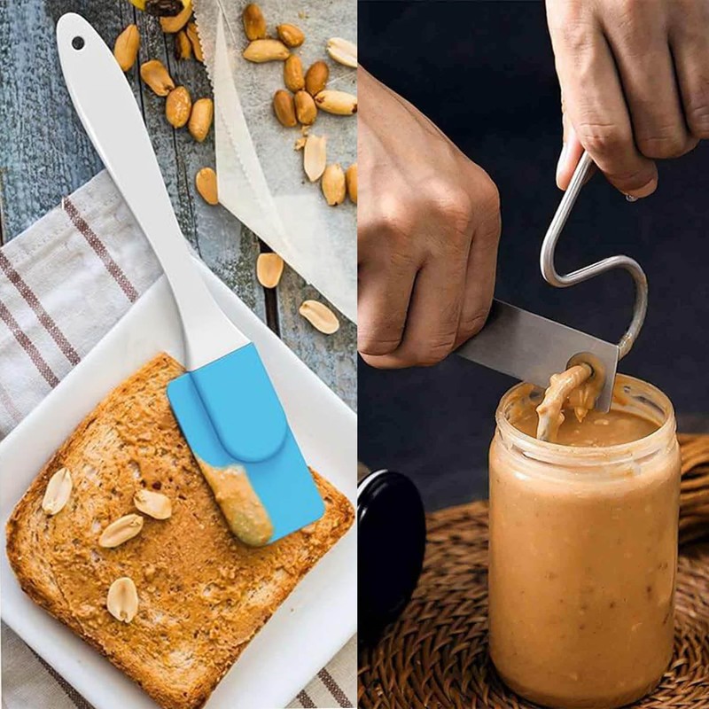 - 【Functionality】The peanut butter stirrer tool adopts a curved-handle design, easy for you to mix the bottom, middle and top of the jar. After it's thoroughly mixed, the scraper allows you to easily clean excess jam. The peanut butter mixer tool set is practical and can be used to stir any nut butter, chocolate and sauce, making your food taste delicious.