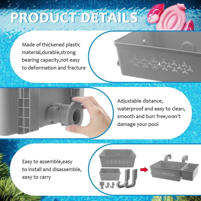 - 【Premium Materials】Pool storage basket Crafted with durable plastic, designed to withstand weights up to 50lb! The sturdy construction ensures that they can withstand the rigors of outdoor use, providing you with long-lasting convenience and functionality.