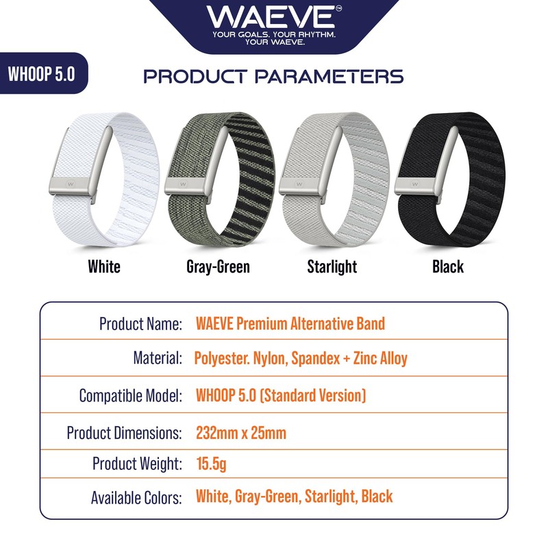 WAEVE Premium Stretch Nylon Band for Whoop 5.0 (One,Peak) - Starlight