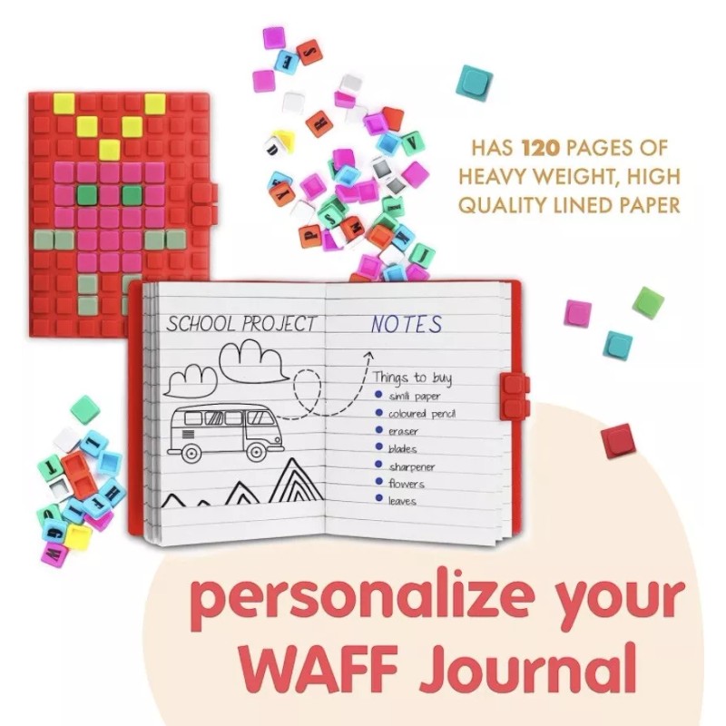 Customizable Cover – Personalize your Waff writing journal by clipping alphabet and coloured cubes anywhere on its surface. It has 70 alphabet and emoji cubes. Dare to show your creativity and style it any way you like!