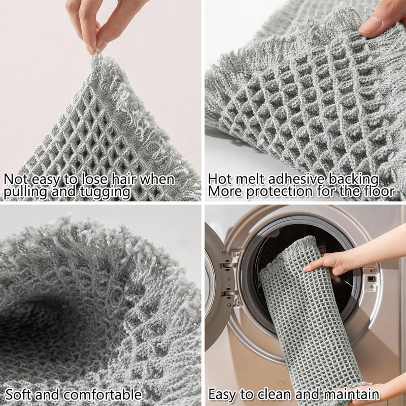 - 【Super absorbent】Double layer deep waffle texture, instant water absorption, more breathable. When you step out of the tub, shower, or get ready at the sink, high-density microfiber fabric can help keep your floor from dripping, keep it dry, and protect your feet from cold floors.