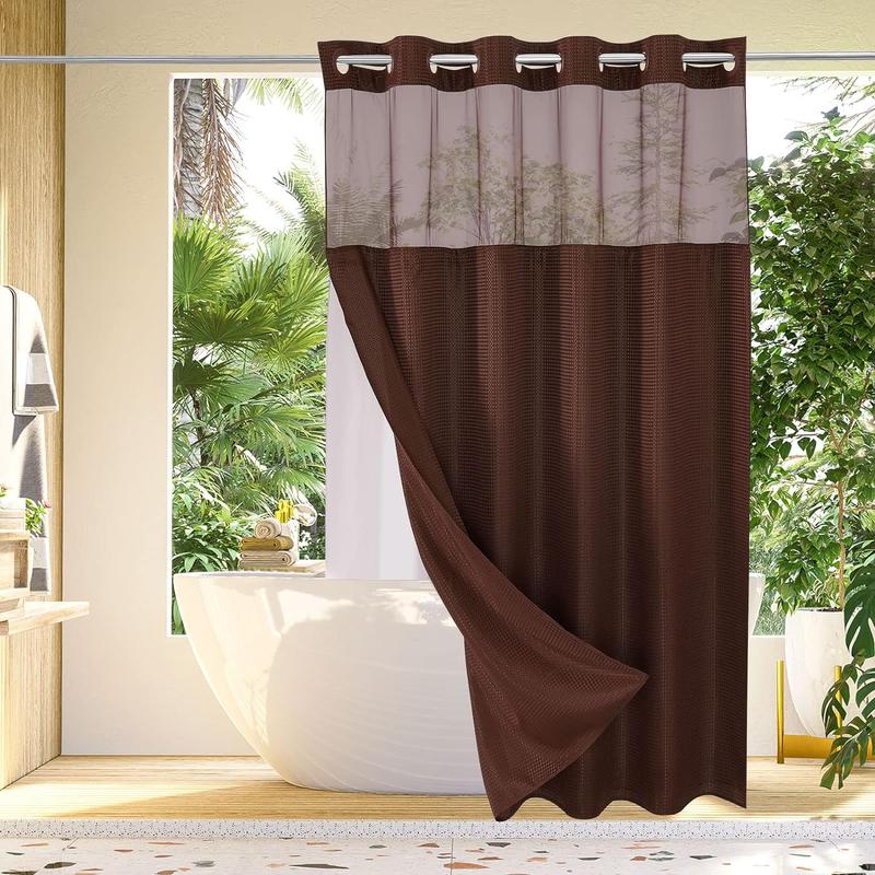 【Double Waterproof】: Featuring a double-layer waterproof design, this shower curtain ensures an exceptional barrier against water, keeping your bathroom dry.