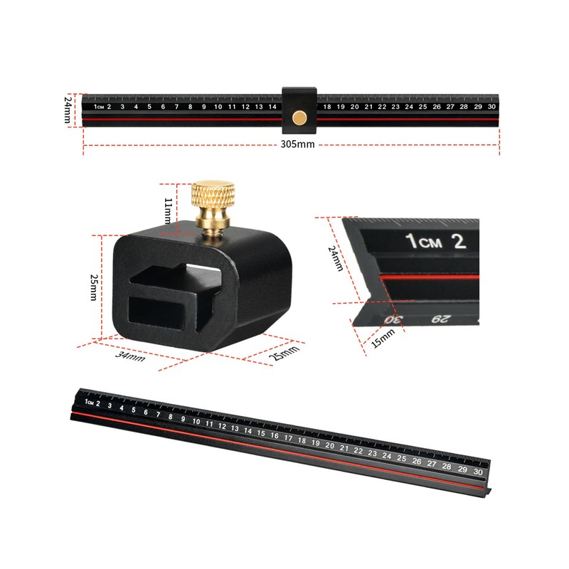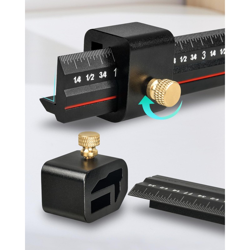 - Built in sliding block that can pass through the entire length of the ruler. Assist in repeated measurements on multiple boards