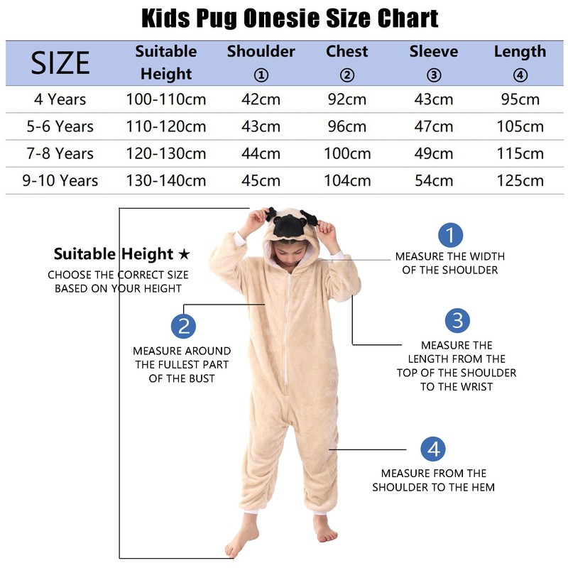 WAFUNNE Kids Dog Costume Cosplay Halloween Animal Onesie for Boys Girls Child Pug 110