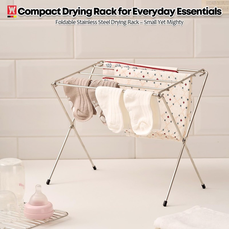 - EASY TO CLEAN & MAINTAIN: The stainless steel structure is easy to clean and maintain, ensuring that the drying rack stays hygienic and rust-free even with frequent use. A quick wipe with a damp cloth keeps it looking new.