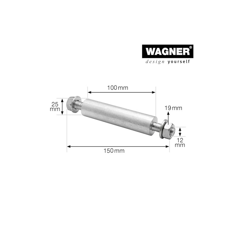 Wagner Professional Axle Material - Diameter 25 x 100 mm, for Wheels with Axle Hole 25 mm, Screw M12 x 150 mm, with Nut and Discs, Galvanised Steel - 13044500