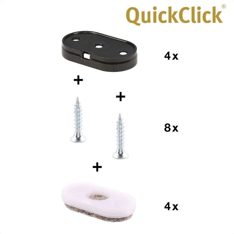 - Box contents: 4 x oval base part 35 x 20 mm; 4 x sliding insert Ultra Soft 32 x 17 mm; 8 x screws - QC 7831