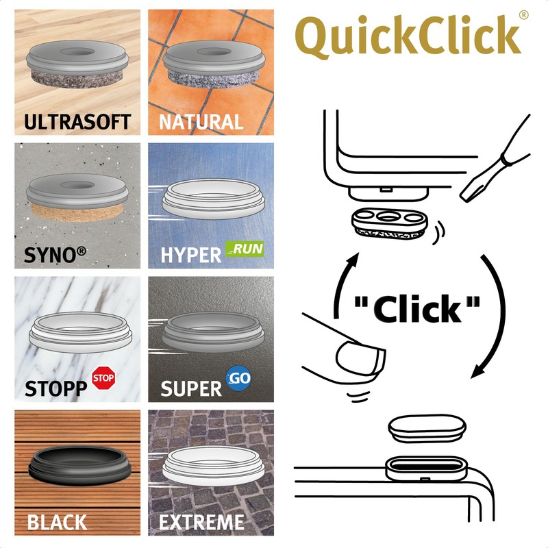 - Patented furniture glider QuickClick system from Wagner Lahr/Schwarzwald - 100% manufacturer quality from Germany