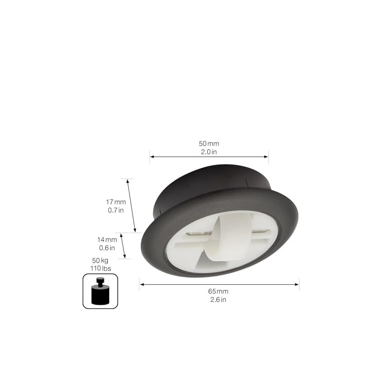 - Wheel diameter 27 mm, wheel width 12.5 mm, height 14 mm, housing diameter inside 50 mm / outer 65 mm, installation depth 17 mm, load capacity 50 kg