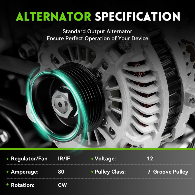 WAGSON 11176N New Alternator 1.8L L4 Fits for 2006-2011 Honda Civic, 80A 12V, 7-Groove Pulley, 31100RNAA01, 31100RNAA01RM, 31100RNAA012M2, AHGA67, A002TC1391, SB347, LRA3157