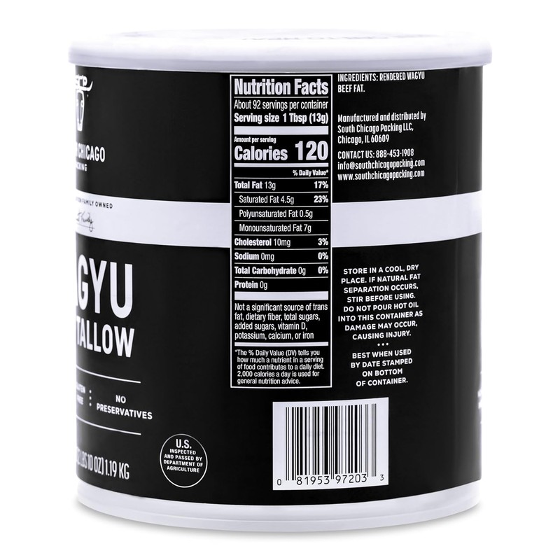 • One 42 Ounce Can of 100% pure high-end Wagyu beef tallow. Butter like consistency for easy sautéing, searing, and cooking.