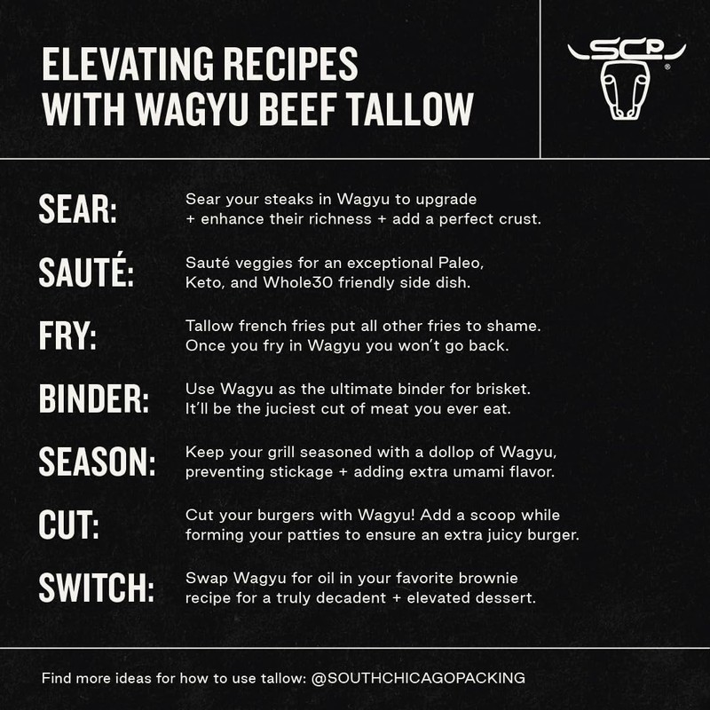 From ranch to table, South Chicago Packing's Wagyu Beef Tallow is sourced from only the best.