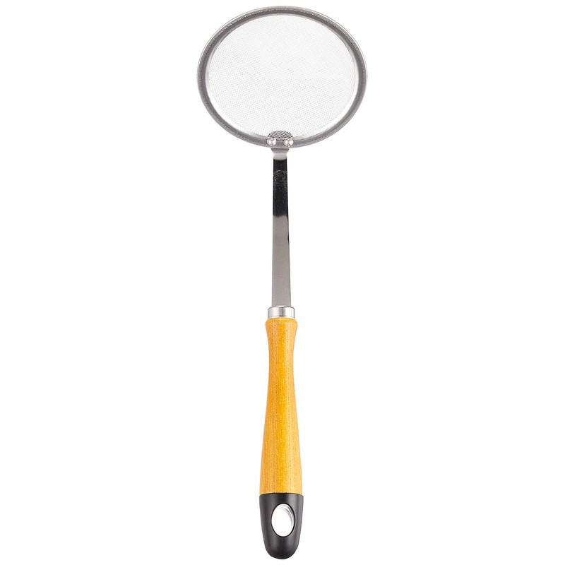- Metal parts: Stainless steel; Handle: Natural wood