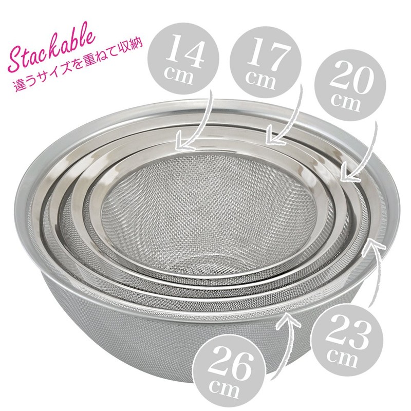 Wahei freiz SUI Gut SUI-6012 Round Mesh Colander, 15.5 in (14 cm), Stackable ...